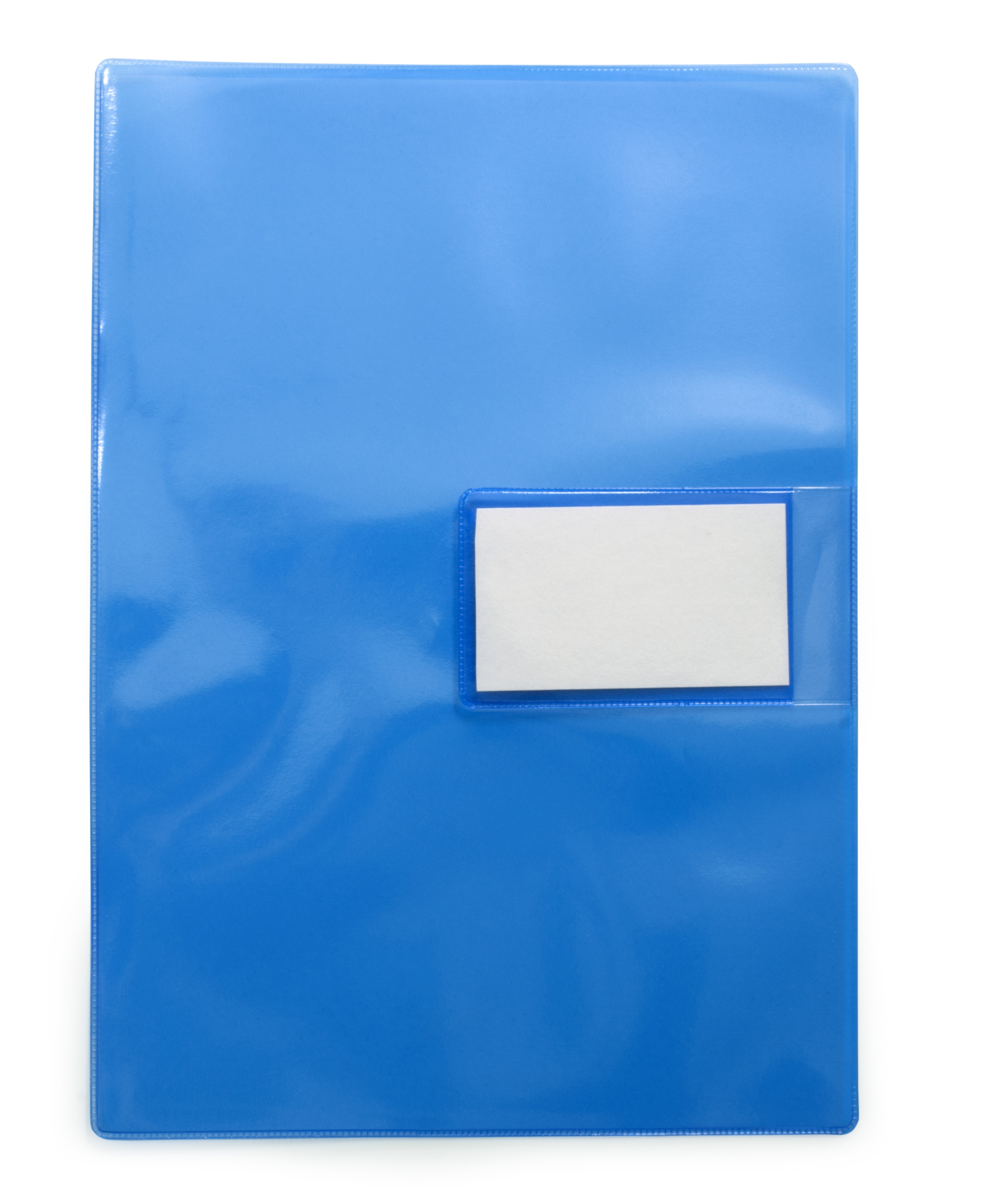 Blåtransparent aktmapp i 0,18 mm PVC med extra ficka som låser långsidan. A4-format. Öppen kort- och långsida