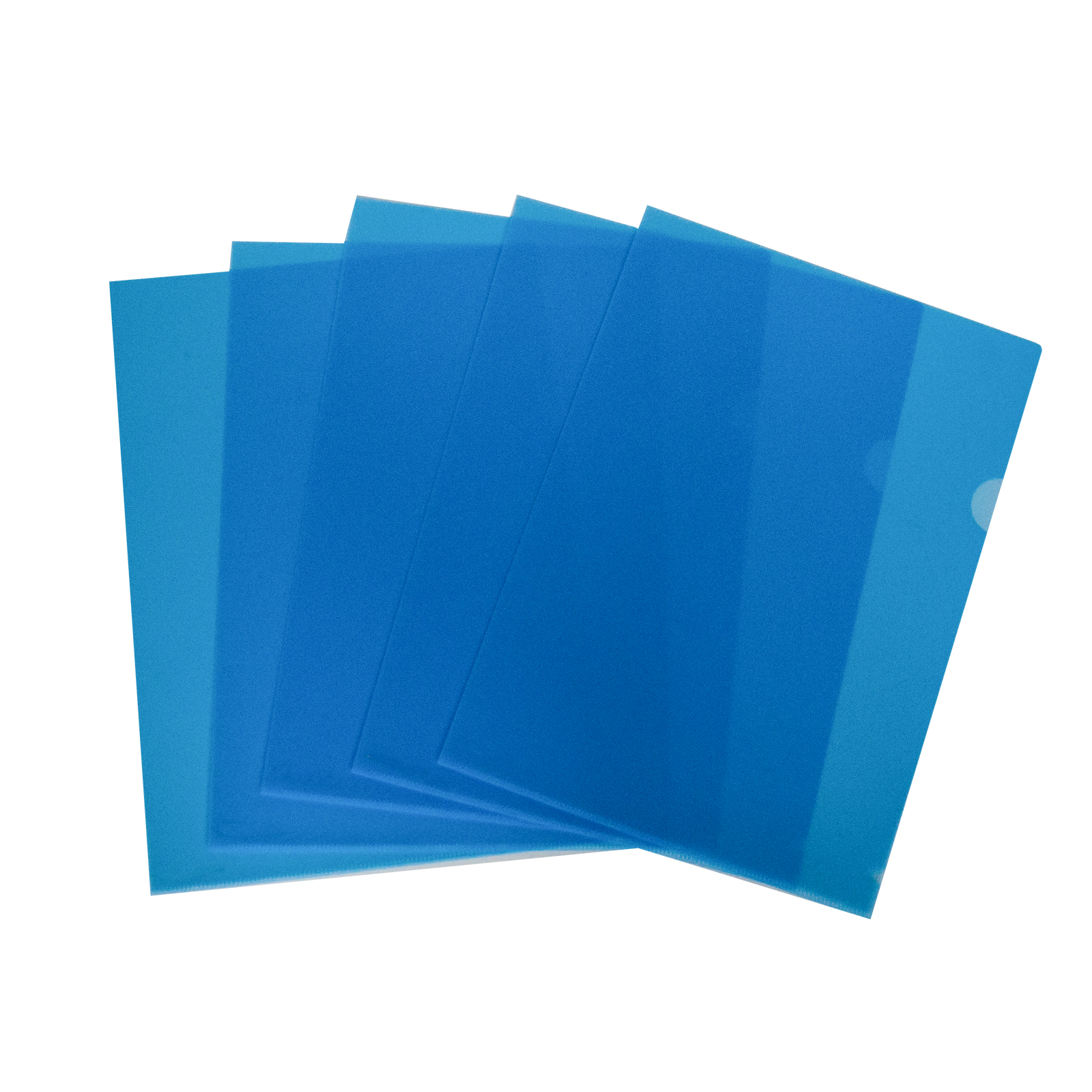 Kraftig jämnskuren aktmapp av 0,18 mm blåtransparent präglad pp. Med fingerhål för att enkelt få grepp om pappren.