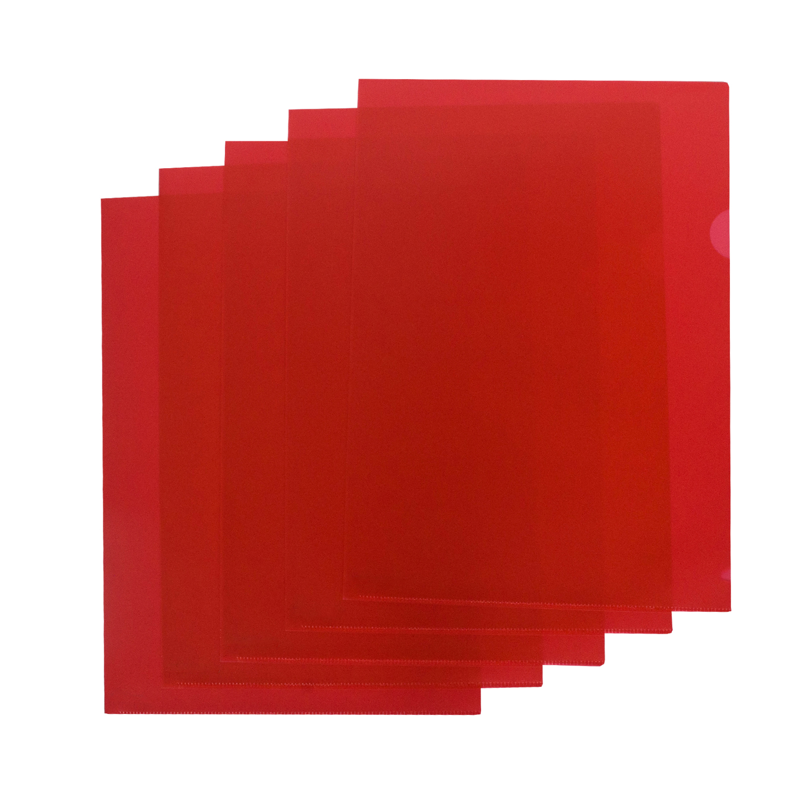 Kraftig jämnskuren aktmapp av 0,18 mm rödtransparent präglad pp. Med fingerhål för att enkelt få grepp om pappren