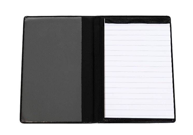 Blockomslag i svart präglad polypropen. Skyddar ditt skrivblock och ger ett bra stöd när du skriver samtidigt som det är elegant att lägga fram på bordet. Blockomslaget har en ficka där du kan förvara lösa blad och viktiga dokument på ett säkert sätt. Passar utmärkt för användning i skolan, på kontoret, i hemmet eller när du är på resande fot.