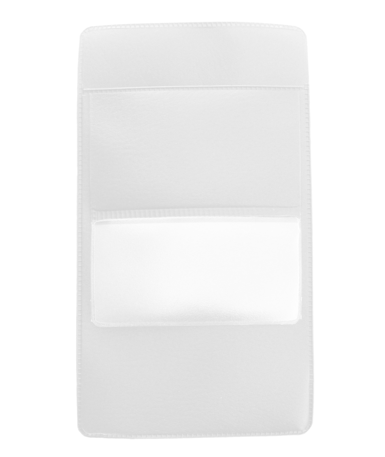 Vit pennficka av polypropylenplast (PP) för bröstficka som skyddar kläderna. Med extra fack för namnetikett